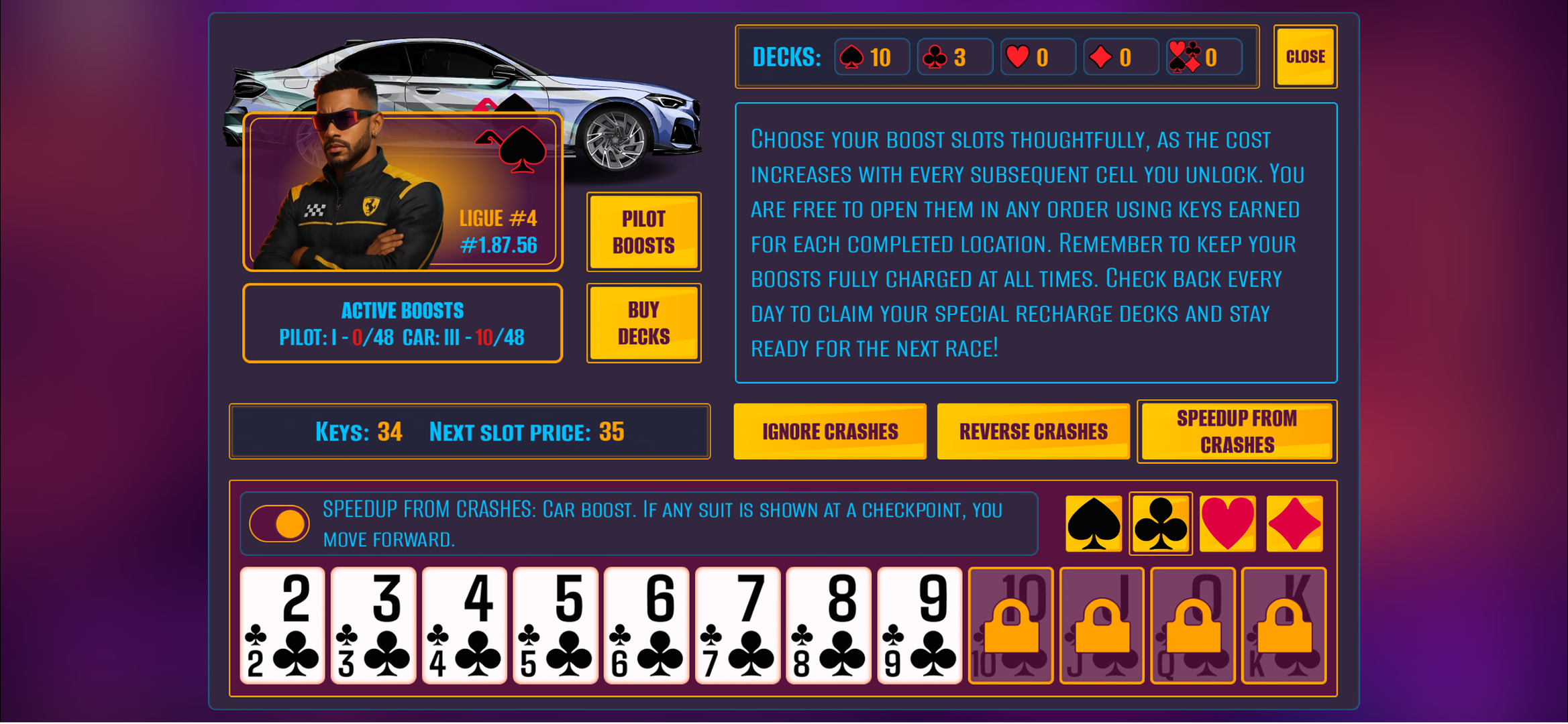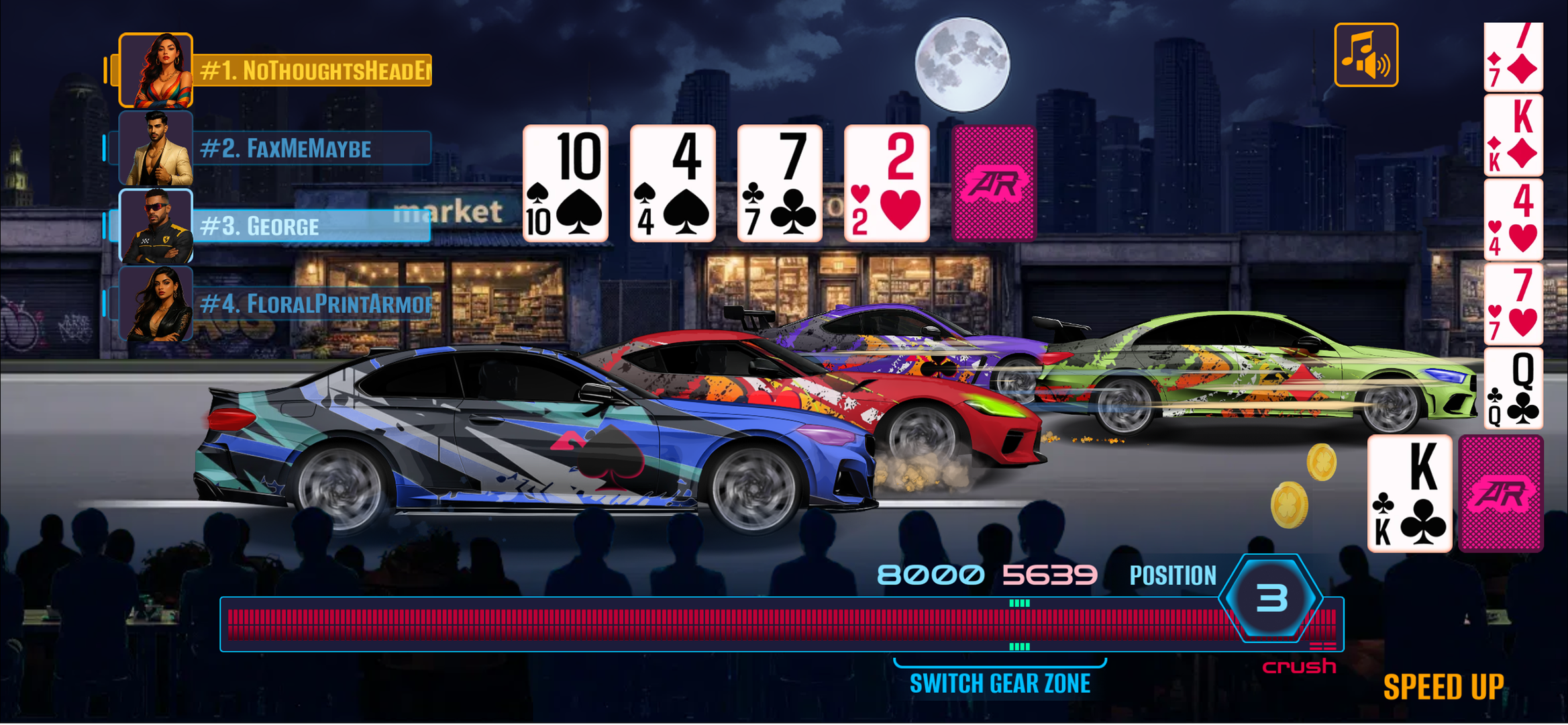 - Cards + timing : The game mixes poker-style card logic with racing reactions.